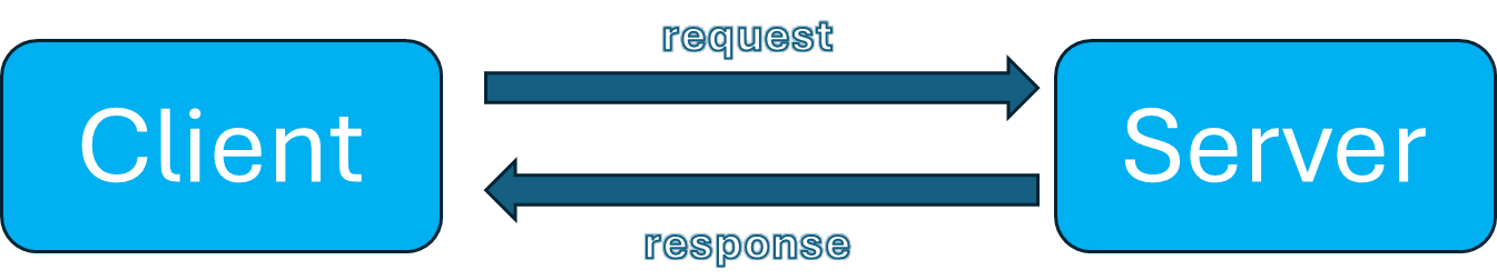 Der Client initiiert immer den Verbindungsaufbau mittels Anfrage an den Server (Request).